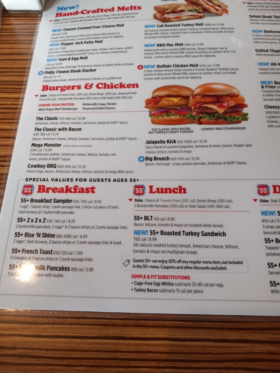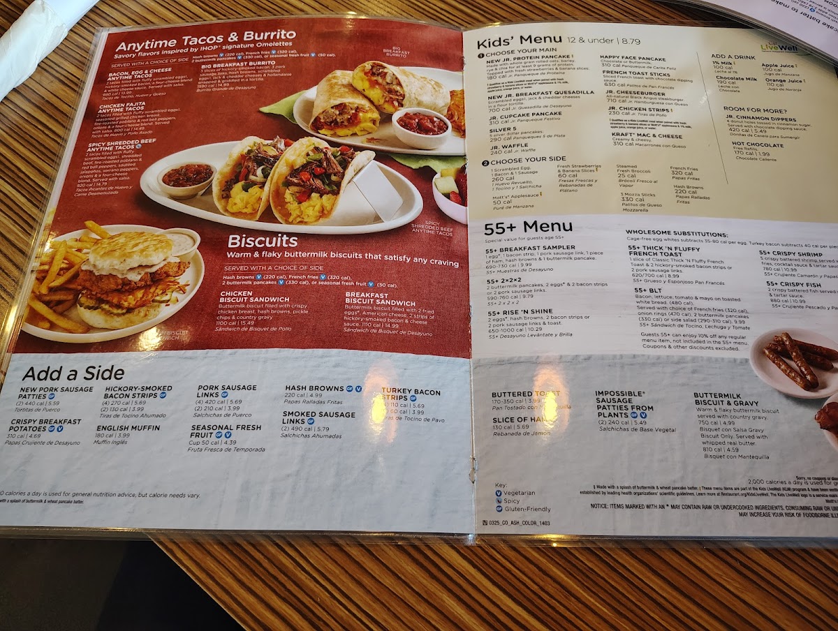 Beyond breakfast staples, IHOP’s menu features hearty entrees like Sirloin Steak Tips sautéed with grilled onions and mushrooms, all-natural roasted turkey with gravy, and the new buttermilk crispy chicken breast fillets. Complement your meal with a variety of sides such as crispy hash browns, potato pancakes, and fresh seasonal fruit.
