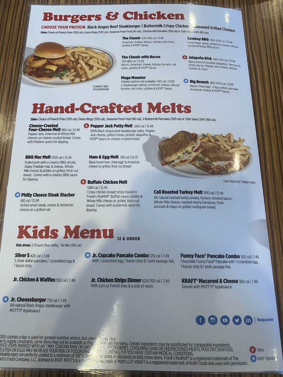 The menu’s balance of classic comfort foods and fresh innovations reflects the welcoming, family-friendly atmosphere. IHOP's flavorful dishes, generous portions, and consistent quality make it a go-to spot for any time of day.